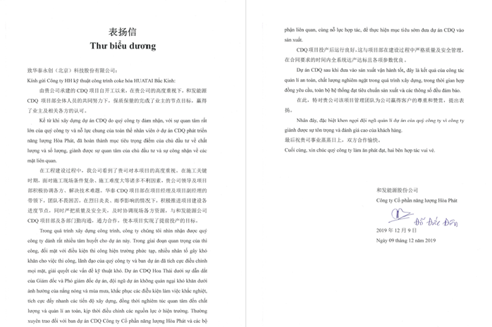 我公司承建的越南和发能源股份公司105t/h干熄焦及余热发电项目的工程竣工验收工作于2019年12月5日全部顺利完成。