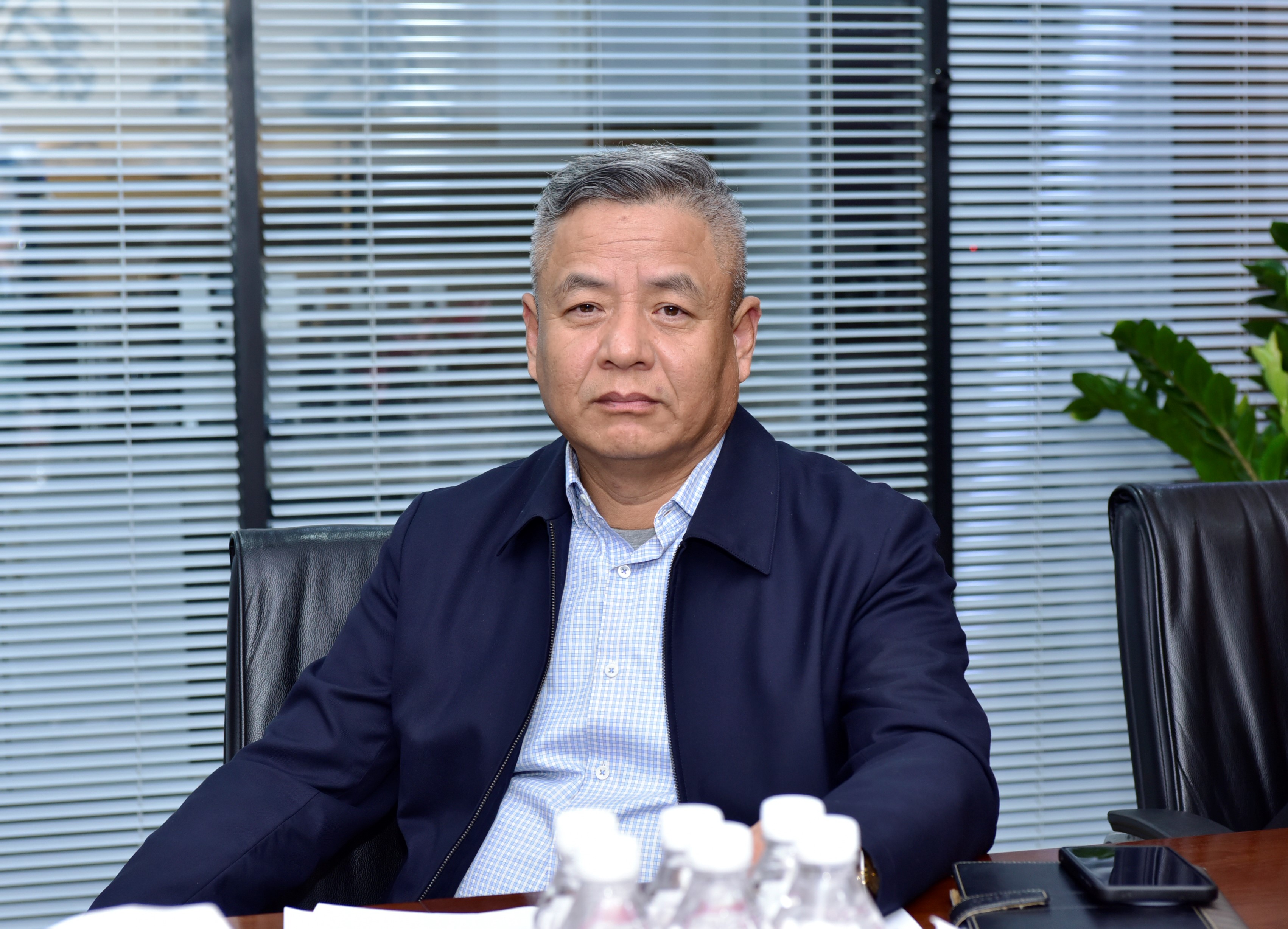 Vice Mayor Chai Feng listens intently as the company outlines its operating development status and requests