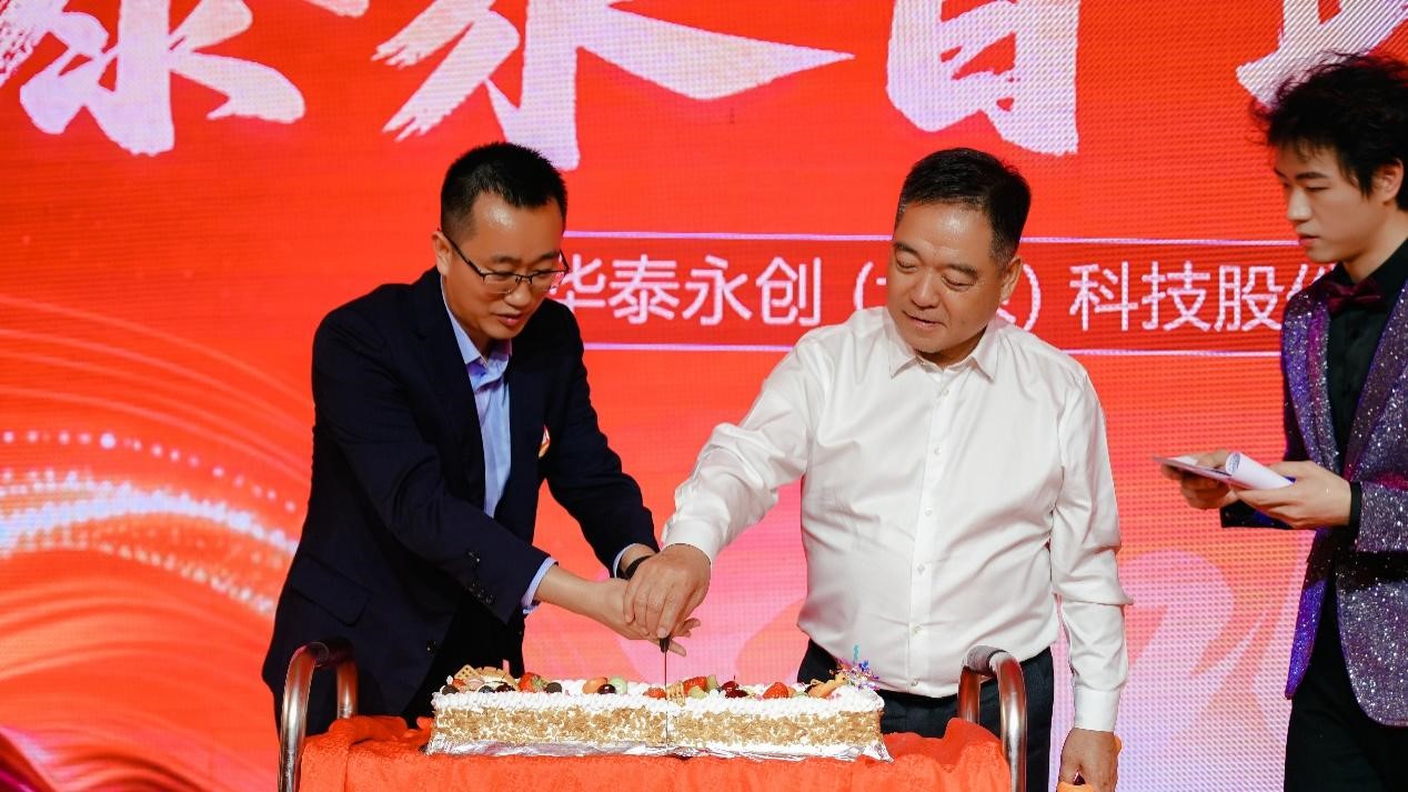 As the aroma of alcohol filled the air, the atmosphere on stage reached another climax. Amidst a flurry of balloons and the jubilant sounds of confetti poppers, an exquisite giant rectangular cake - symbolizing grand ambitions and a sweet future - was wheeled to the center of the stage. Colleagues celebrating their birthdays on the day were invited to the stage to join Chairman Xu Lie in cutting this cake, sharing the sweetness and joy.
